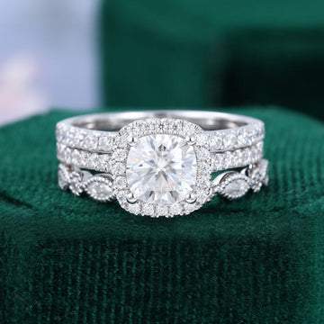 3PCS Cushion Cut Moissanite Engagement Ring Set Half Eternity Ring Set