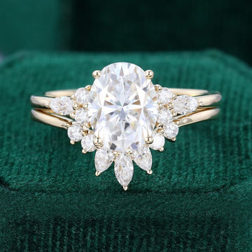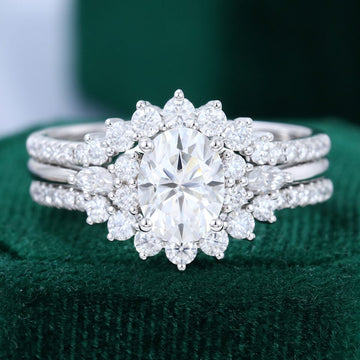 3PCS Oval Cut Moissanite Cluster Bridal Ring Set In White Gold