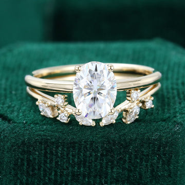Minimalist Oval Cut Moissanite Bridal Ring Set With Leaf Band