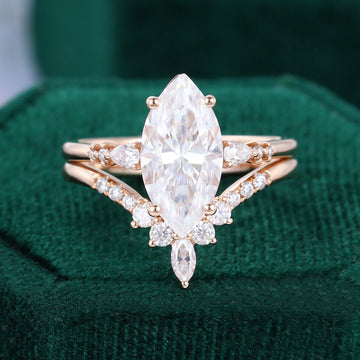 DEW 3CT Marquise Cut Moissanite Wedding Ring Set