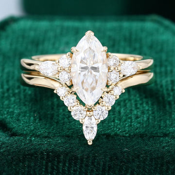 Marquise Cut Moissanite Bridal Ring Set With Leaf Engagement Ring Set