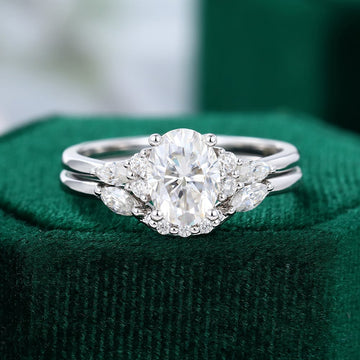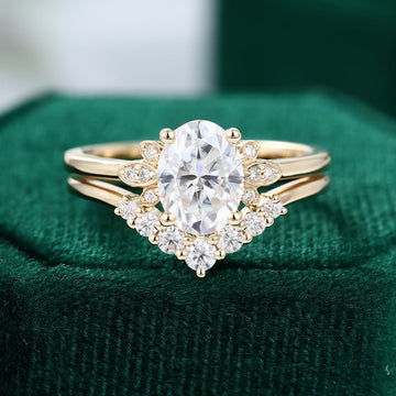 Oval Cut Moissanite With Petal Band Engagement Ring Set