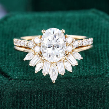 Oval Cut Moissanite Ring With Curved Wedding Band Bridal Set
