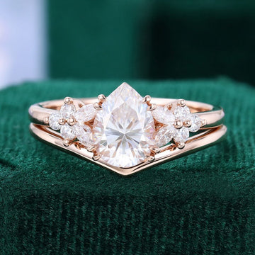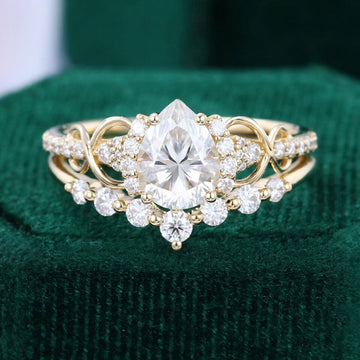 Pear Cut Moissanite Engagement Ring Set Nature Inspired Bridal Set