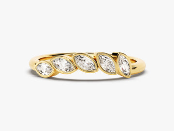 Bezel Set Marquise Curved Moissanite Wedding Band