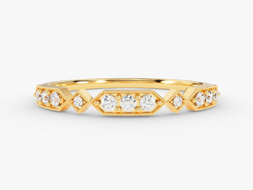 5 MM Notched Wedding band With Round Moissanite Diamond