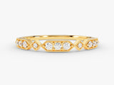 Art Deco rings often feature bold lines, angular shapes, and elaborate patterns, giving them a timeless yet striking look. Look for milgrain detailing, filigree, or engraving to enhance the vintage feel.