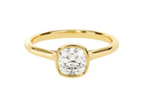 The Bezel Cushion Moissanite Engagement Ring is a striking and contemporary symbol of love and commitment. At its heart, this elegant ring showcases a magnificent Cushion-cut moissanite, known for its brilliant facets that create a captivating play of light. The center moissanite is securely encircled by a smooth metal rim, offering both protection and a minimalist aesthetic.