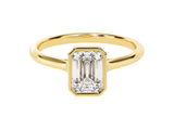 The Bezel Emerald Moissanite Engagement Ring is a stunning and sophisticated symbol of love and commitment. At the heart of this exquisite ring shines a brilliant emerald-cut moissanite gemstone, known for its rectangular shape with clipped corners and a radiant play of light. The center moissanite is securely encircled by a smooth metal rim, offering both protection and a minimalist aesthetic.