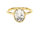 Make a bold statement of love with our Bezel Oval Moissanite Engagement Ring. The striking 2-carat oval-cut moissanite is beautifully encased in a sleek bezel setting, offering a modern and contemporary twist to a classic gemstone shape. This ring reflects the perfect blend of tradition and innovation, symbolizing your unwavering love and a future filled with beauty and brilliance.
