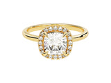 Elevate your proposal with the captivating allure of our Cushion Halo Moissanite Engagement Ring. At its heart lies a magnificent cushion-cut moissanite, prized for its remarkable brilliance and fire. It is beautifully embraced by a halo of smaller moissanite gems, meticulously set to amplify the ring's radiant shimmer.