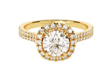 A double pave shank halo moissanite engagement ring featuring a 1.00 ct center stone is a breathtaking choice that beautifully combines sophistication with modern design. This ring style enhances the brilliance of the center stone while providing a stunning visual impact.