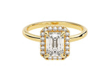 The Emerald Halo Moissanite Engagement Ring is a breathtaking and timeless symbol of love and commitment. At its core, this exquisite ring features a dazzling emerald-cut moissanite, known for its rectangular shape with trimmed corners and remarkable brilliance. What makes this ring truly special is its halo setting, which encircles the central moissanite with a shimmering array of smaller stones.