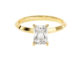 The Knife Edge Radiant Moissanite Engagement Ring is a stunning and elegant symbol of love and commitment. At its core, this exquisite ring features a brilliant radiant-cut moissanite, renowned for its rectangular shape with trimmed corners and remarkable brilliance. Its sleek and graceful knife-edge band design sets this ring apart. The band narrows to a delicate point beneath the central radiant moissanite, adding a touch of refinement and simplicity to the overall design.