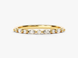 This sleek wedding band features marquise and round-cut moissanites, each sourced responsibly and conflict-free. It looks spectacular worn alone for a simple statement or stacked with other bands for a more elaborate look. From the materials to finest details, every aspect is crafted with care so that you can feel good and confident wearing it.