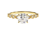 Fascinating and splendid, this moissanite engagement ring in 14k gold features 4 round and 4 marquise-shaped sparkling side stones to complement your round center moissanite.