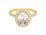 Experience the allure of timeless romance with our Oval Halo Moissanite Engagement Ring featuring Pave Set Side Stones. The centerpiece boasts a mesmerizing oval-cut moissanite, its brilliance accentuated by a radiant halo of moissanite accents. What sets this ring apart is the artful arrangement of pave set side stones that adorn the band, creating a dazzling display of light and luxury.