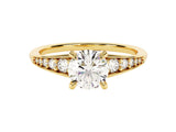 A pave crown moissanite engagement ring featuring a 1.00 ct center stone is a stunning choice that combines modern elegance with a touch of vintage flair. The design emphasizes a luxurious appearance with its intricate detailing and sparkling accents.