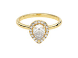 The Pear Halo Moissanite Engagement Ring is a captivating and elegant symbol of love and commitment. At its heart, this exquisite ring features a dazzling pear-shaped moissanite, renowned for its elegant teardrop-like shape and remarkable brilliance. What makes this ring truly special is its halo setting, which encircles the central moissanite with a shimmering array of smaller stones.