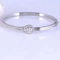 Stone Size: Main stone is 1ct (6.5mm), second largest stone is 0.11ct (3.0mm), there are also 60 pieces of 0.014ct (1.5mm) stones. Total carat weight of the moissanite bracelet is 2 carat.