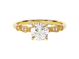 Milgrain Side Stone Round Cut Moissanite Engagement Ring is a beautiful, unique design featuring a 1.00-carat rounded center stone and 0.6 carats side stones. This ring is made in solid gold with milgrain detail and will show your love for your significant other.
