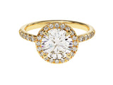 A round cut moissanite round halo engagement ring featuring a 1.50 ct center stone is a stunning and timeless choice that combines classic elegance with modern brilliance. The halo design enhances the center stone's size and sparkle, making it a captivating focal point.