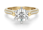 The Seine round cut 1.50 ct center moissanite engagement ring is a beautifully crafted piece that blends timeless elegance with modern sophistication. Its design is likely inspired by graceful lines and delicate detailing, making it a stunning choice for an engagement ring.