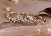 Our Elanor Diamond Cluster Band features .17 ct round diamonds set in alternating hexagon and round shapes with milgrain details. Available in rose, yellow, or white gold. A perfect addition to your wedding set or band stack!