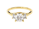 A three stone moissanite engagement ring with emerald cut accents featuring a 1.40 ct center stone is a stunning and sophisticated choice. This design not only offers elegance but also a meaningful representation of your journey together.