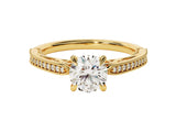 A vintage-inspired moissanite engagement ring with an adorned cathedral setting featuring a 1.00 ct center stone is a captivating choice that beautifully merges classic elegance with intricate detailing. This design is perfect for those who appreciate timeless beauty and romantic aesthetics.