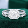 White Gold Cushion Cut Moissanite Half Eternity Open Band Engagement Ring Set